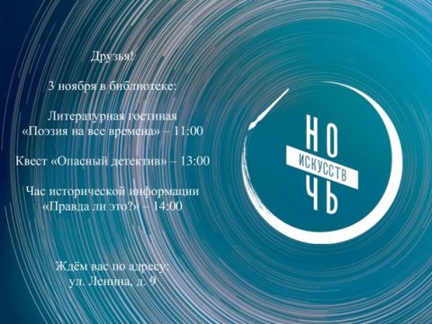 03 ноября в 11-00 Вахрушевская ГБФ Приглашает на Ночь искусств.