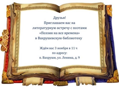 03 ноября в 11-00 Вахрушевская ГБФ Приглашает на литературную встречу.