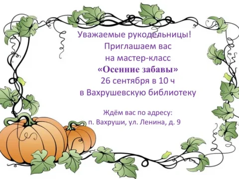 26 сентября в 10-00 Вахрушевская городская библиотека-филиал Приглашает на мастер-класс.