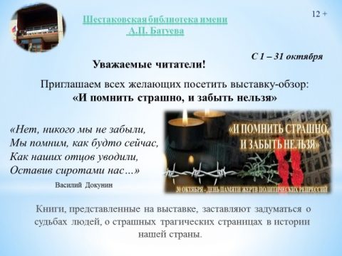 ВЫСТАВКА-ОБЗОР «и ВСПОМНИТЬ СТРАШНО, И ЗАБЫТЬ НЕЛЬЗЯ»