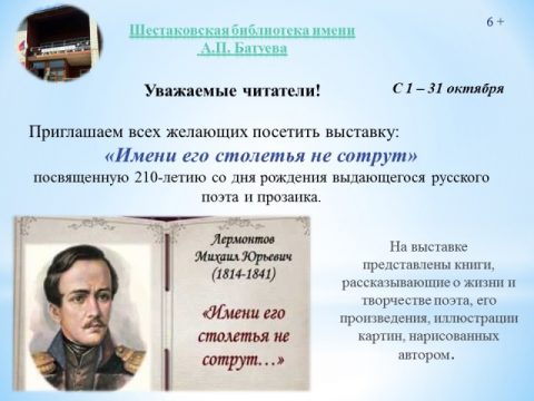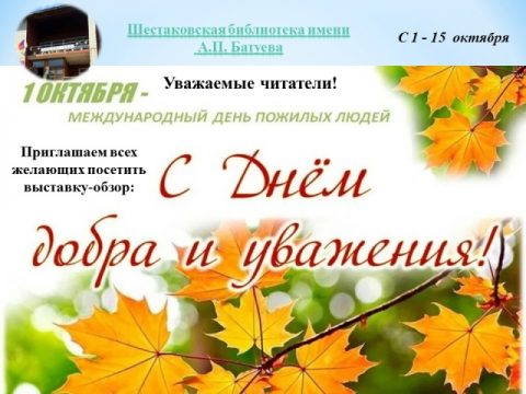 С 01 по 31 октября Шестаковская библиотека имени А.П. Батуева Приглашает на выставку-обзор.