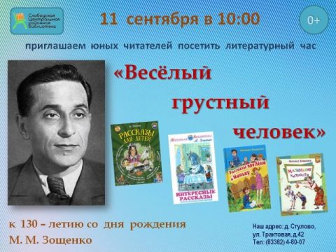 11 сентября в 10-00 Слободская Центральная районная библиотека Приглашает на литературный час.