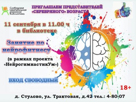 11 сентября в 11-00 Слободская Центральная районная библиотека Приглашает на занятие по нейрофитнесу.