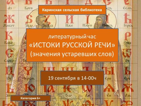 19 сентября в 14-00 Библиотека с.Карино Слободского района Приглашает на литературный час.