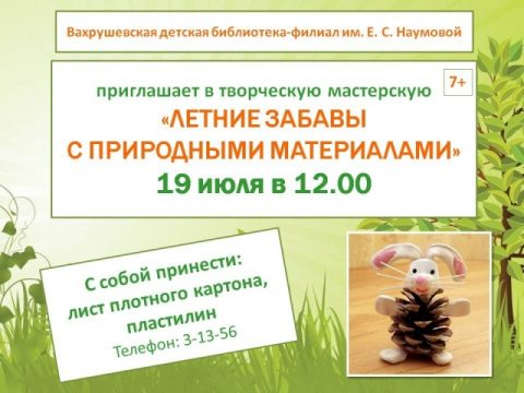 19 июля в 12-00 Вахрушевская детская библиотека им. Е. Наумовой Приглашает в творческую мастерскую.