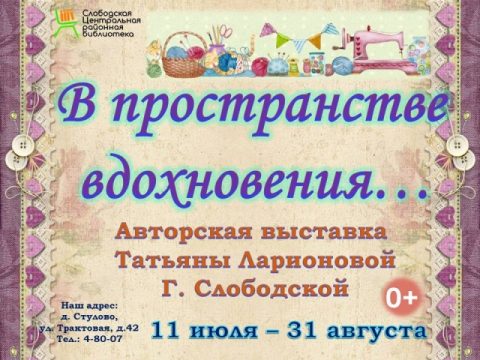 С 11 по 31 июля Слободская Центральная районная библиотека Приглашает на авторскую выставку.