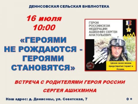 16 июля в10-00 Денисовская библиотека Приглашает на встречу.