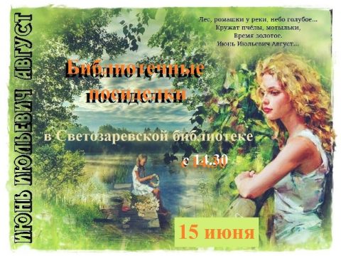 15 июня в 14-30 Светозаревская СБФ Приглашает на библиотечные посиделки.