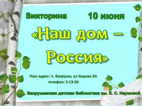 10 июня Вахрушевская детская библиотека им. Е. Наумовой Приглашает на викторину.
