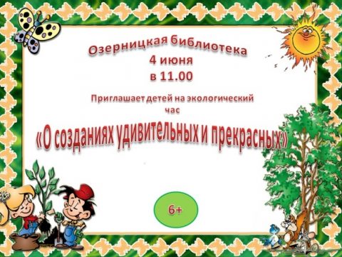 4 июня в 11-00 Озерницкая-Библиотека П-Центральный Приглашает на экологический час.