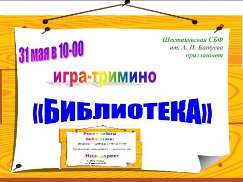 31 мая в 10-00 Шестаковская библиотека имени А.П. Батуева Приглашает принять участие в игре.