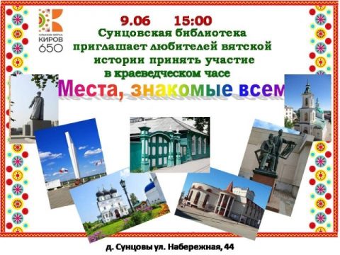 9 июня в 15-00 Сунцовская СБФ Приглашает на краеведческий час.