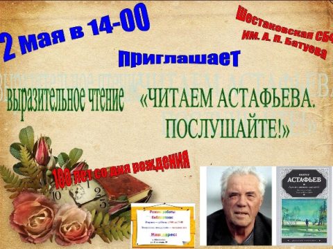 2 мая в 14-00 Шестаковская библиотека имени А.П. Батуева Приглашает на выразительные чтения.