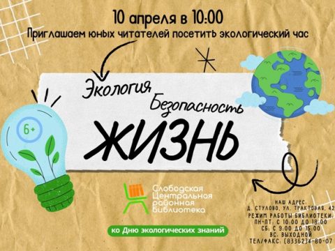 10 апреля в 10-00 Слободская Центральная районная библиотека Приглашает на экологический час.