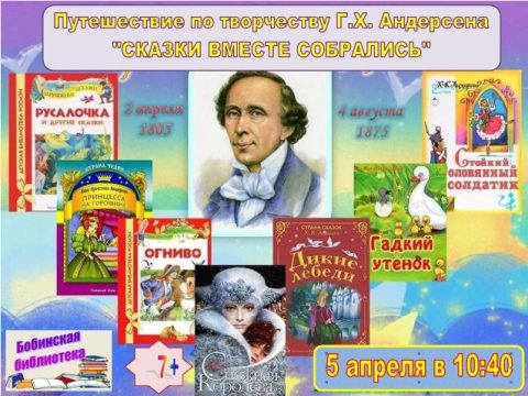 05 апреля в 10-40 Библиотека Бобино Приглашает на путешествие по творчеству Г.Х. Андерсена