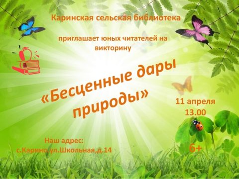 11 апреля в 13-00 Библиотека с.Карино Приглашает на викторину.
