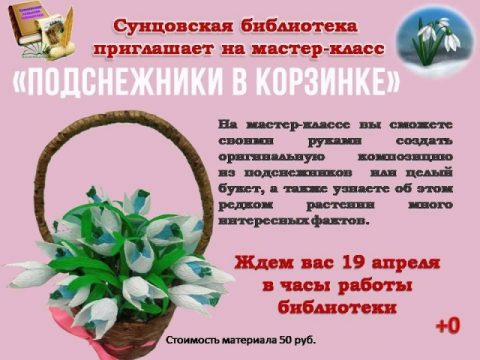 19 апреля в часы работы библиотеки Сунцовская СБФ Приглашает на мастер-класс.