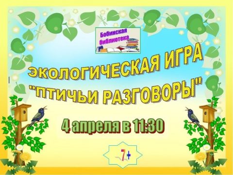 04 апреля в 11-30 Библиотека Бобино Приглашает на экологическую игру.