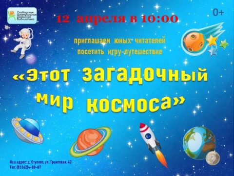 12 апреля в 10-00 Слободская Центральная районная библиотека Приглашает на игру-путешествие.