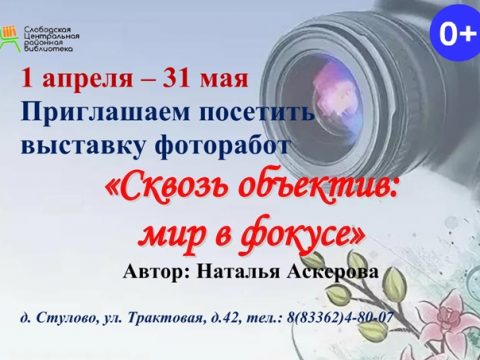 С 01 апреля по 31 мая Слободская Центральная районная библиотека Приглашает на выставку фоторабот.