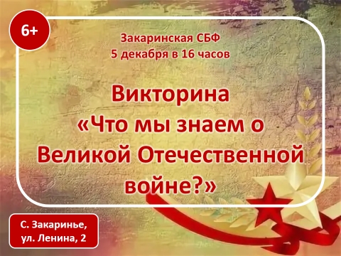 05 декабря в 16-00 Закаринская СБФ Приглашает на викторину.