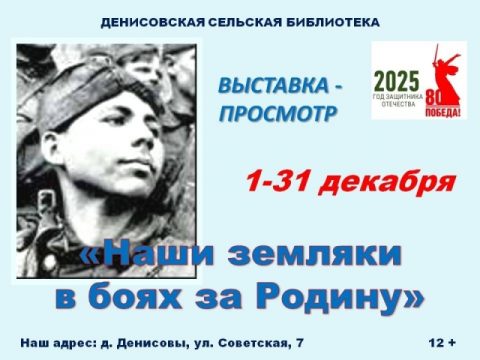 С 01 по 31 декабря Денисовская библиотека Приглашает на выставку-просмотр.