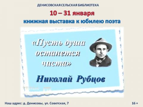 КНИЖНАЯ ВЫСТАВКА К ЮБИЛЕЮ ПОЭТА «ПУСТЬ ДУША ОСТАНЕТСЯ ЧИСТА»